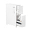 - El espacio de almacenamiento detrás de la puerta superior se divide en 2 niveles de almacenamiento mediante un particiones ajustables, que se pueden ajustar en tres alturas, para que pueda diseñar de manera flexible el espacio de almacenamiento detrás de la puerta. Además, el lateral del armario tiene un compartimento abierto de 5 x 19 cm, por lo que es ideal para guardar artículos de limpieza - la escobilla del inodoro.