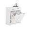 - [Diseño atractivo y funcional]: El acabado en blanco combina con distintos estilos de decoración, mientras que las puertas trenzadas con tiradores rojos favorecen la ventilación y aportan un toque moderno y elegante a este armario baño estrecho