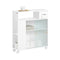 - El espacio de almacenamiento detrás de la puerta se divide en 2 niveles de almacenamiento mediante un particiones ajustables, que se pueden ajustar en tres alturas, para que pueda diseñar de manera flexible el espacio de almacenamiento y también para mayor privacidad. El estante inferior abierto permite un fácil acceso a tus pertenencias.