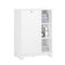 - Hecha de MDF de clase E1, vidrio y cesto de tela no tejidos. El armario de cesto soporta hasta 30 kg. Peso de envío: 20 kg. Se puede a la pared con un dispositivo antivuelco, lo que aumenta su estabilidad. Cerradura de puerta magnética.