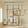 Las perchas retráctiles se ajustan al espacio disponible para crear un armario abierto. La estructura metálica es duradera y resistente, y no requiere instalación permanente.
