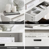 - [Calidad prémium] Fabricada en MDF de grado E1 (seguro y duradero) con un acabado de laca blanca resistente a los arañazos, esta mesita de noche flotante se integra a la perfección en interiores escandinavos, minimalistas o contemporáneos. Cuenta con un cajón de deslizamiento suave para mayor comodidad diaria
