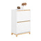 - Este producto es principalmente blanco, con toques de madera, lo que le da una textura única. Se puede colocar en una esquina o en el espacio estrecho entre la bañera y el inodoro para aprovechar el espacio adecuadamente.