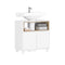 - Este mueble bajo de baño, que está equipado con 2 compartimentos abiertos y 2 puertas, ofrece mucho espacio de almacenamiento para toallas, cosméticos, adornos y otros accesorios ahorrando espacio. Los estantes detrás de las puertas son ajustables en altura en 3 posiciones para satisfacer diferentes necesidades de almacenamiento.