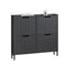 - Cuenta con 3 solapas y tiene bastante espacio para 4-8 pares de zapatos. Viene sin tiradores, haciendo un diseño hueco en puertas para una cómoda apertura del mueble.