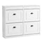 - [Diseño Compacto con Cajón Discreto] Equipado en el frente con un cajón de apertura por presión, ideal para almacenar betún, llaves u otros objetos pequeños, este zapatero para recibidor mantiene tu entrada limpia y ordenada.